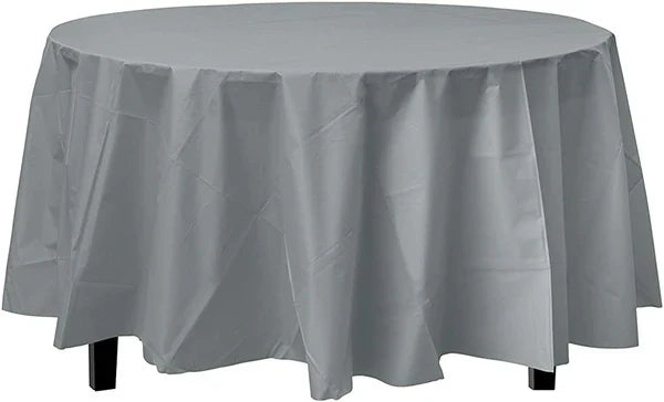 Enhance your event decor with our Round Plastic Silver Tablecloth. Measuring 84" x 84", it provides full coverage and a touch of elegance. Made from durable plastic. Perfect for baby...