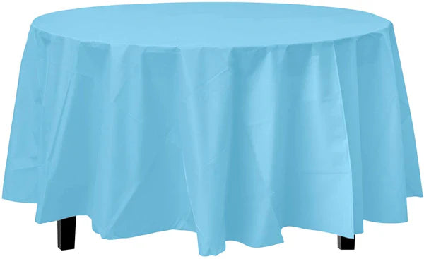 Enhance your event decor with our Round Plastic Baby Blue Tablecloth. Measuring 84" x 84", it provides full coverage and a touch of elegance. Made from durable plastic. Perfect for...