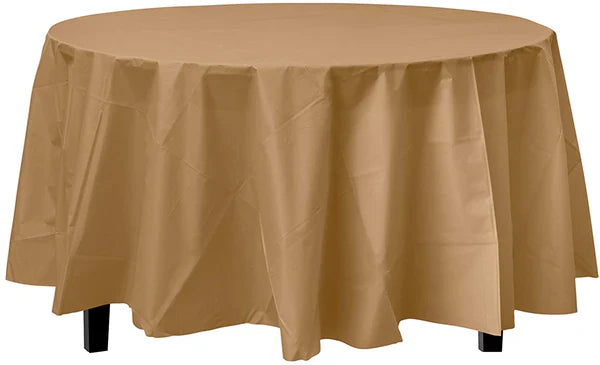 Enhance your event decor with our Round Plastic Gold Tablecloth. Measuring 84" x 84", it provides full coverage and a touch of elegance. Made from durable plastic. Perfect for baby...