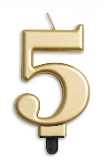 Gold Birthday Cake Wax Candles Number 5