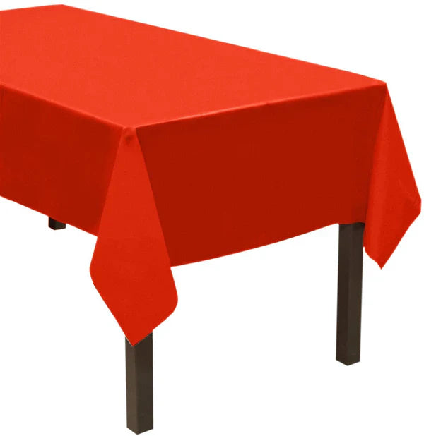 Expertly cover and protect your tables with our Heavy Duty Plastic RedTablecovers. These durable 54 inch by 108 inch tablecovers are made from high-quality plastic, ensuring long-lasting use while adding a pop of vibrant orange to your event.