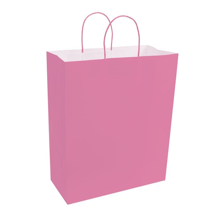 Expertly crafted, these PAPER BAGS WITH HANDLES FOR FAVORS & GIFTS 15¾" - PINK are a versatile and eco-friendly option for all your gifting needs. With sturdy handles and a spacious size, they make the perfect choice for packaging any type of favor or gift.
